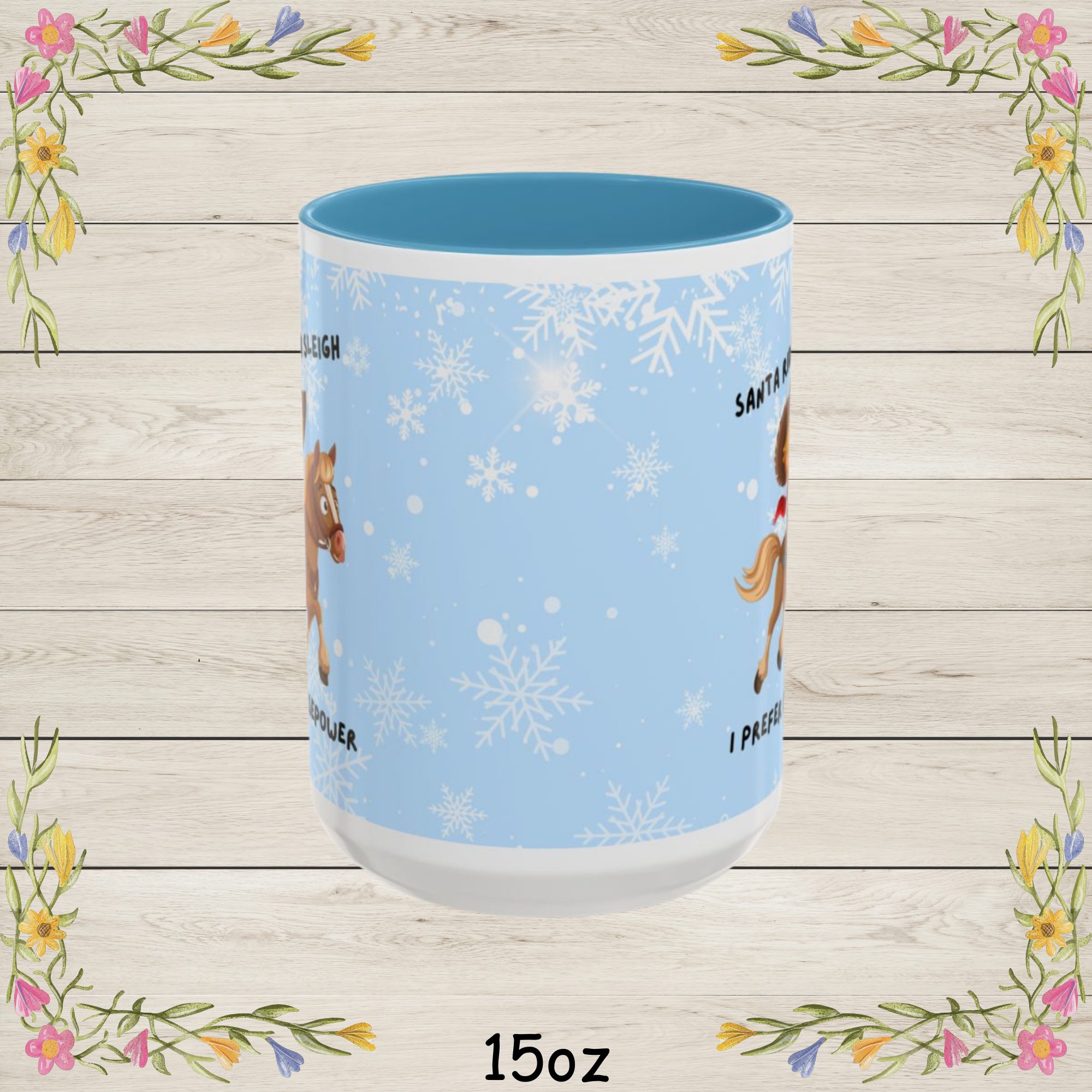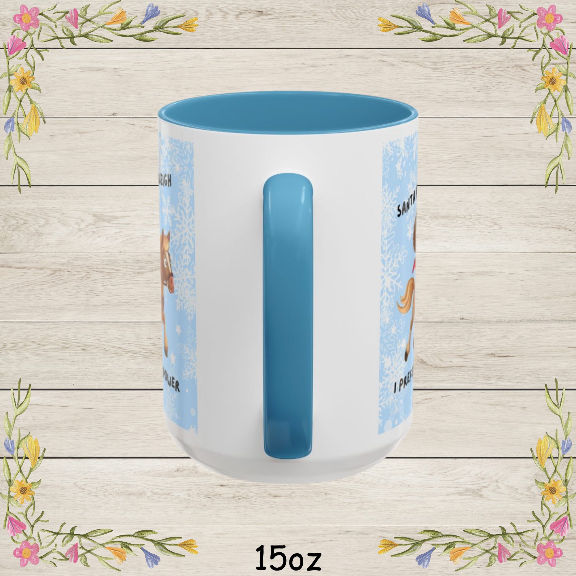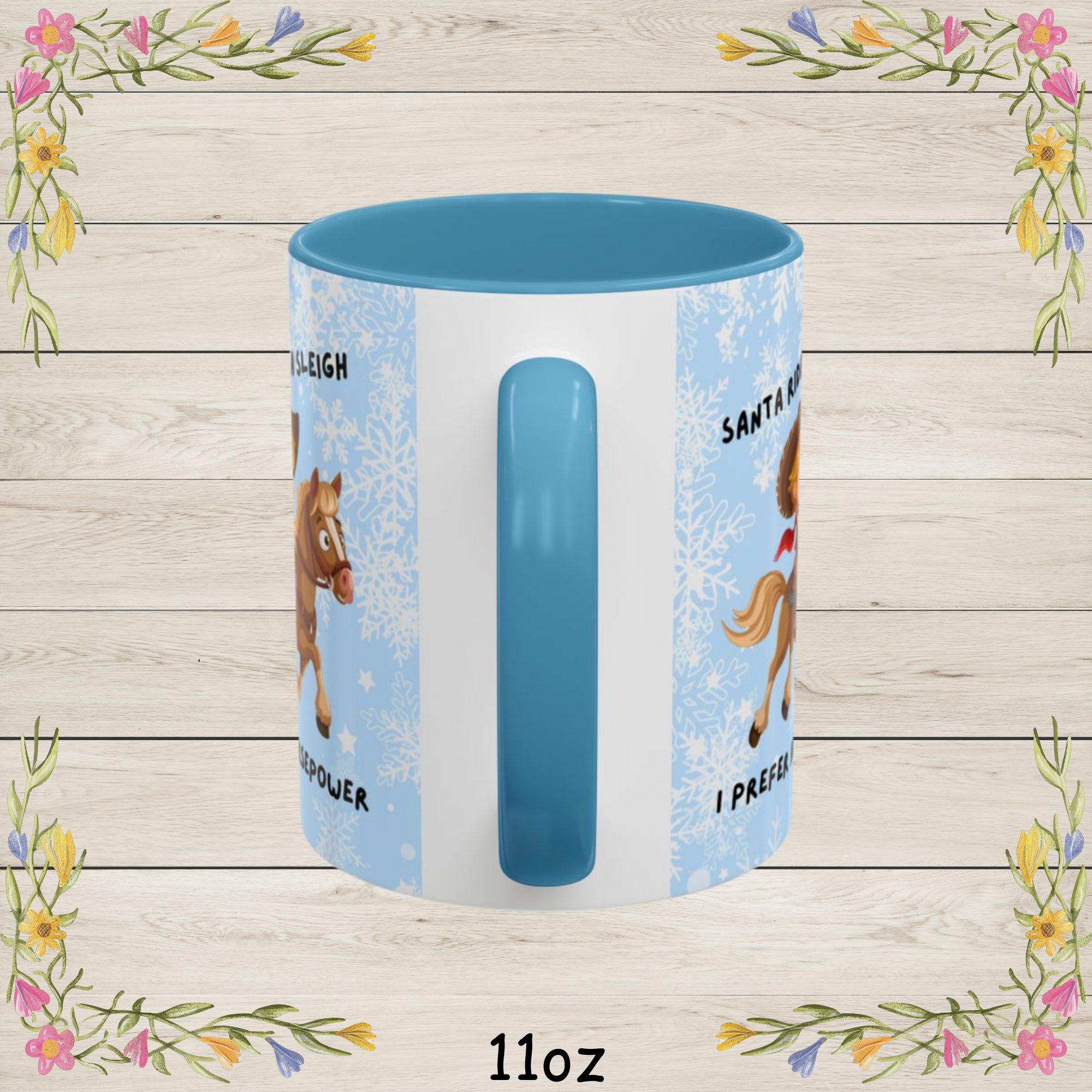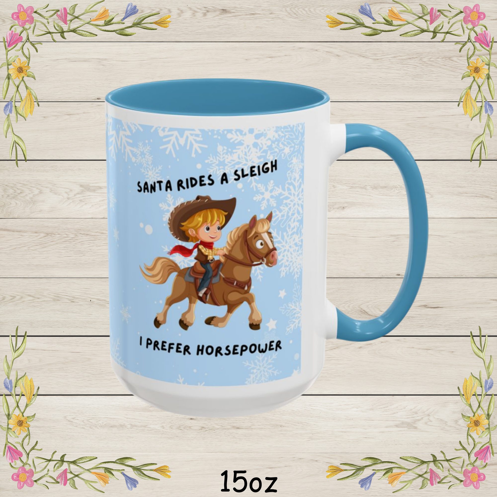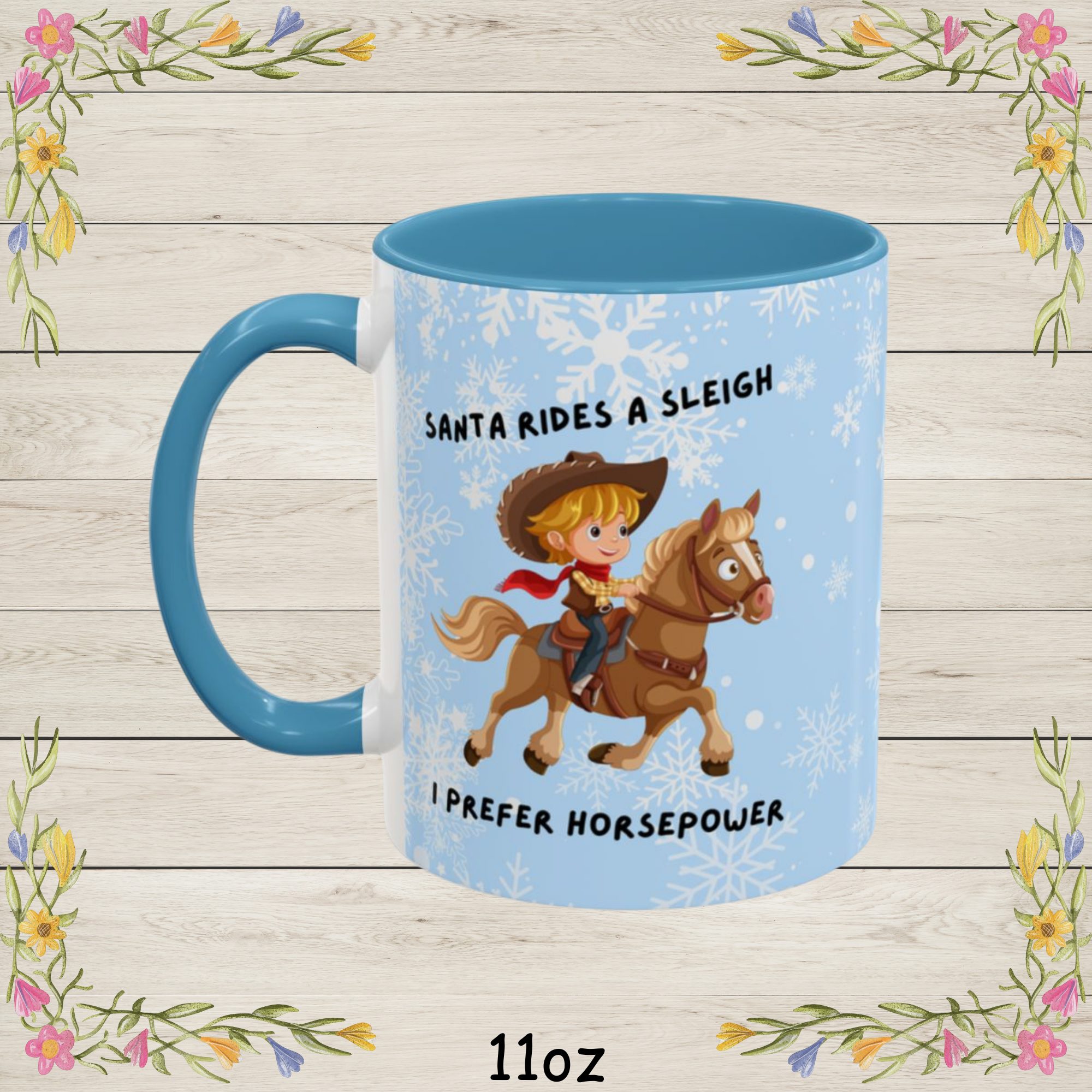 | Add some horsepower to your holidays with this hilarious “Santa Rides a Sleigh, I Prefer Horsepower” Christmas Coffee Mug! Whether you’re a horse lover, car enthusiast this festive Christmas coffee cup is a fun twist on traditional Christmas cheer. Featuring a bold and playful design of a rider on horseback with Santa-inspired flair, it’s the perfect way to celebrate your kind of horsepower. Made from durable white ceramic with a glossy finish, this mug is available in 11oz and 15oz sizes. Its vibrant color interior and matching handle make every sip merry and bright, while the C-shaped handle ensures a comfortable grip during chilly winter mornings. Perfect Gift For: Product Highlights: