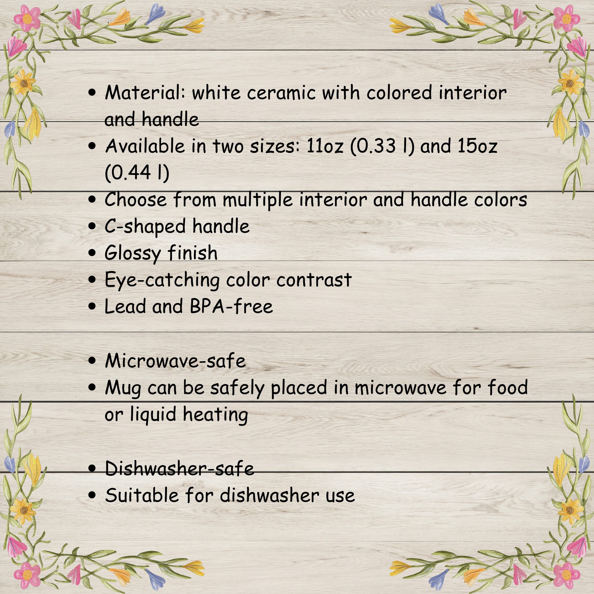 Made from durable white ceramic with a glossy finish, this mug is available in 11oz and 15oz sizes. Its vibrant color interior and matching handle make every sip merry and bright, while the C-shaped handle ensures a comfortable grip during chilly winter mornings.