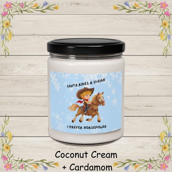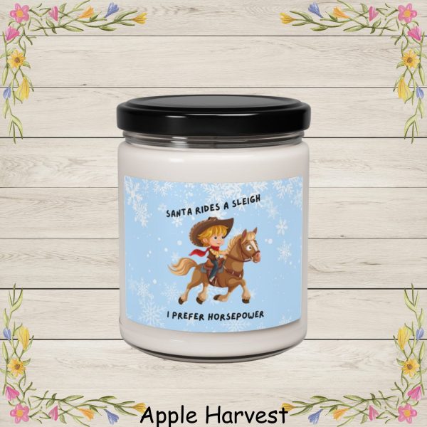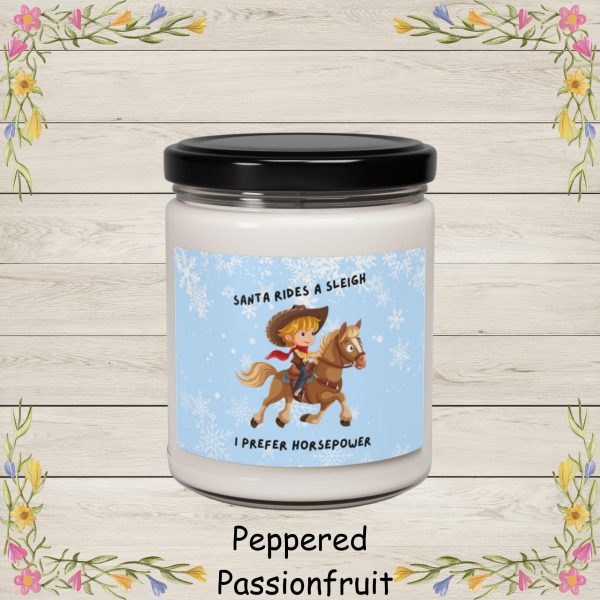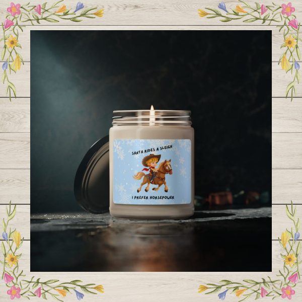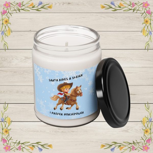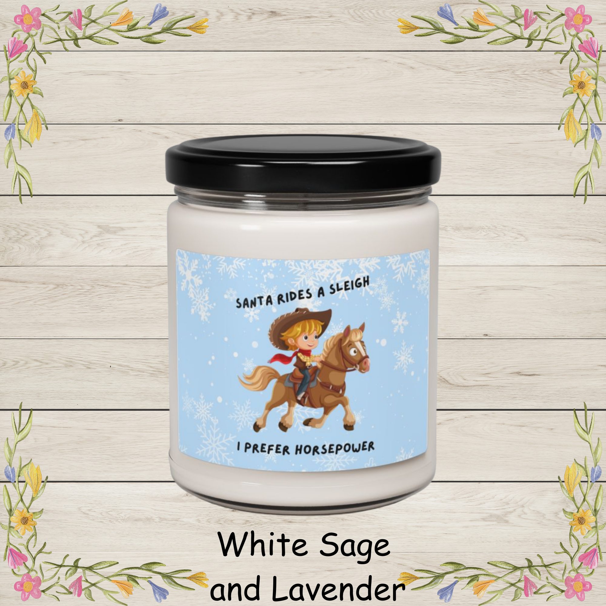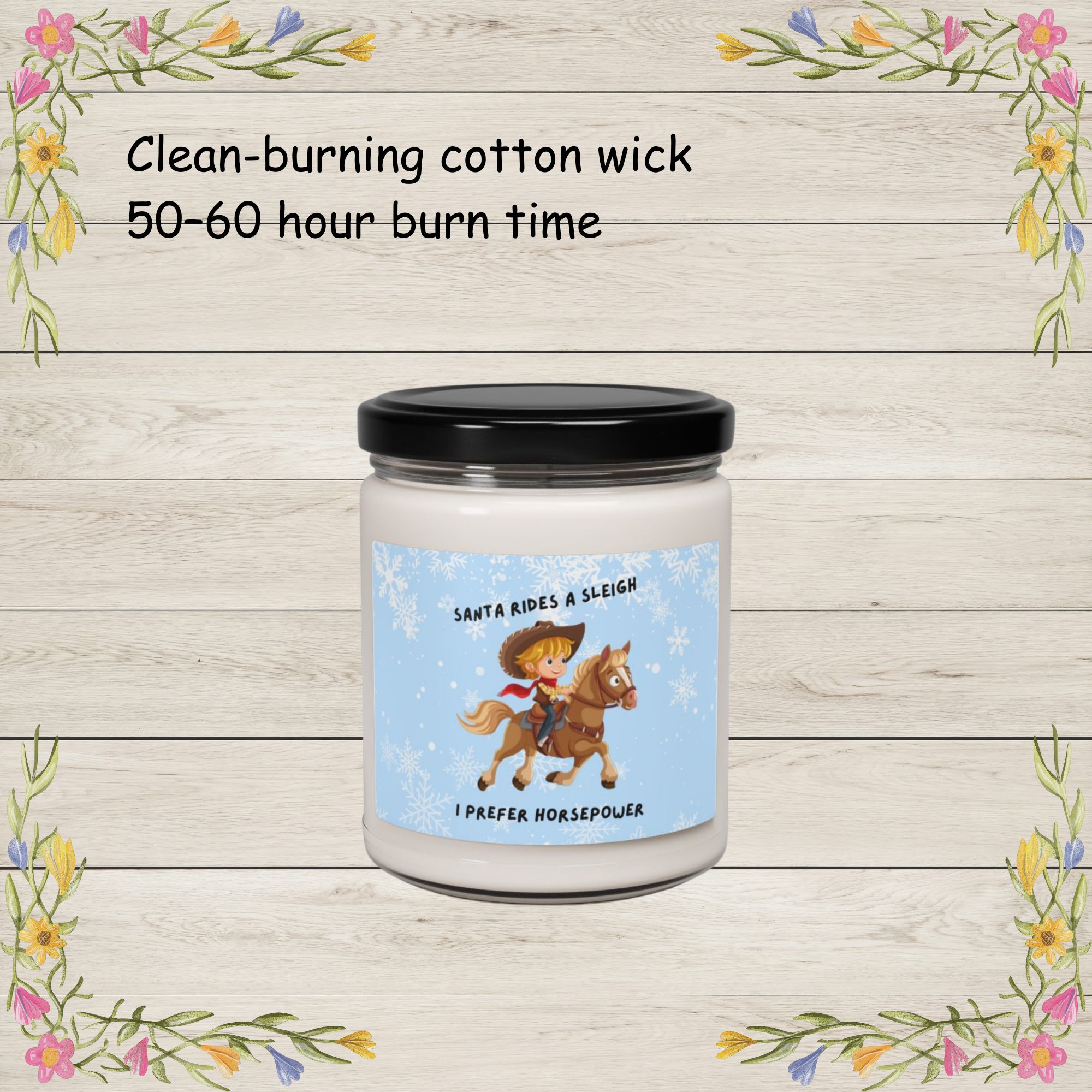 | ** Christmas Scented Candle, Holiday, Cowboy, Horse, Santa Rides a Sleigh, I Prefer Horsepower, Soy Wax ** | ||||||