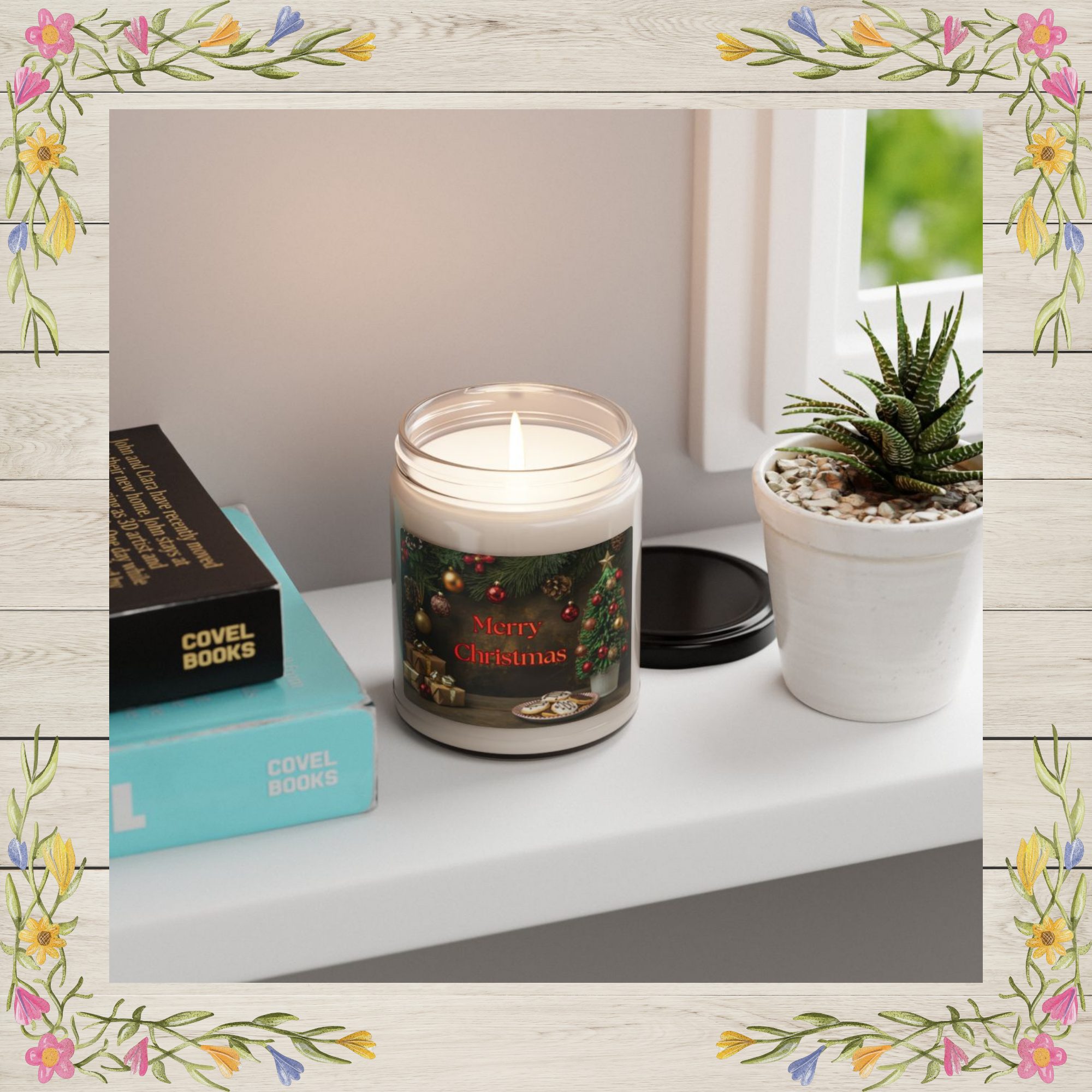 | Fill your home with cozy holiday cheer with this Merry Christmas 9oz Scented Soy Candle. Featuring a charming Christmas scene — complete with a decorated Christmas tree, festive Christmas cookies, wrapped Christmas gifts, and warm holiday lettering — this scented Christmas candle adds instant seasonal magic to any room. Hand-poured in small batches, each Christmas candle is made from a vegan, non-toxic soy wax blend and burns cleanly with a 100% cotton wick. The Warm Vanilla & Pine fragrance brings together the sweetness of fresh-baked holiday treats with crisp evergreen notes, creating a nostalgic aroma perfect for relaxing nights, family gatherings, or holiday gift-giving. The scented Christmas candle comes in a reusable glass jar with a black lid and a glossy permanent label that won’t fade. Enjoy approximately 50–60 hours of burn time, then repurpose the glass as a mini vase, pencil holder, or keepsake jar long after the season is over. Features