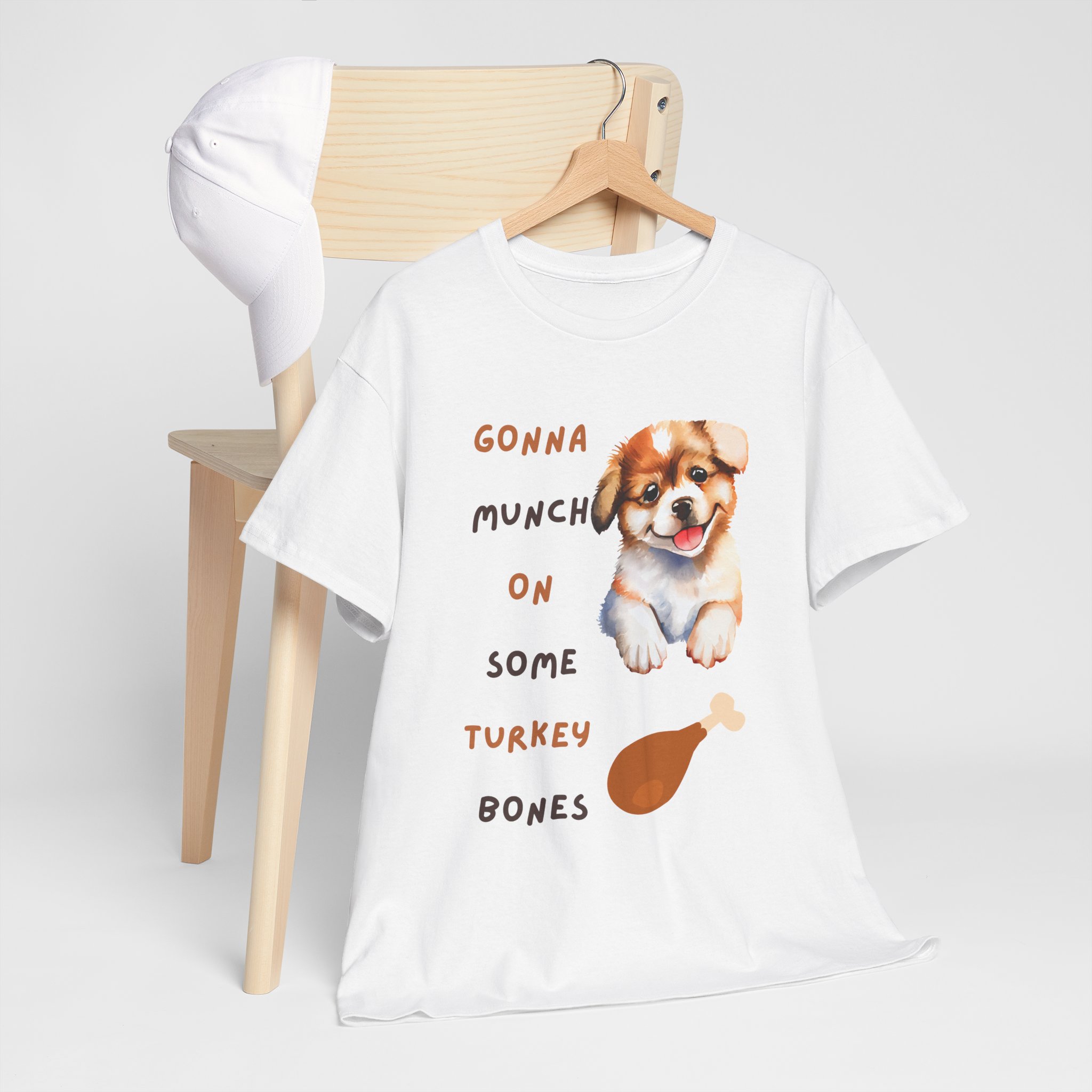 **Gonna Munch On Some Turkey Bones Thanksgiving Puppy T Shirt Unisex Heavy Cotton Tee**
