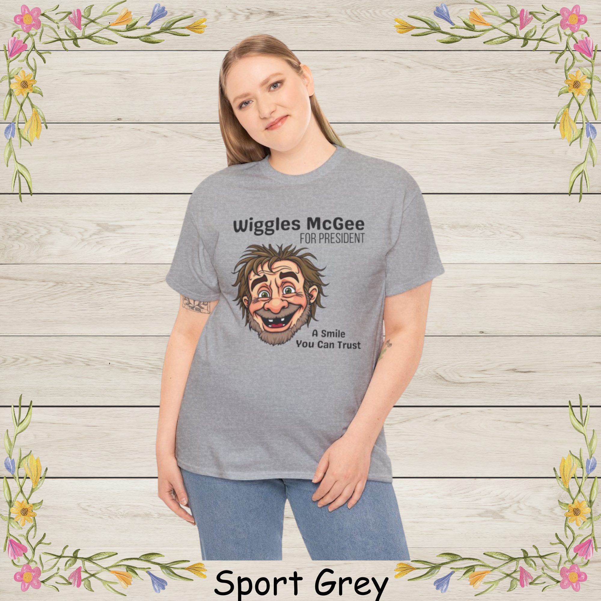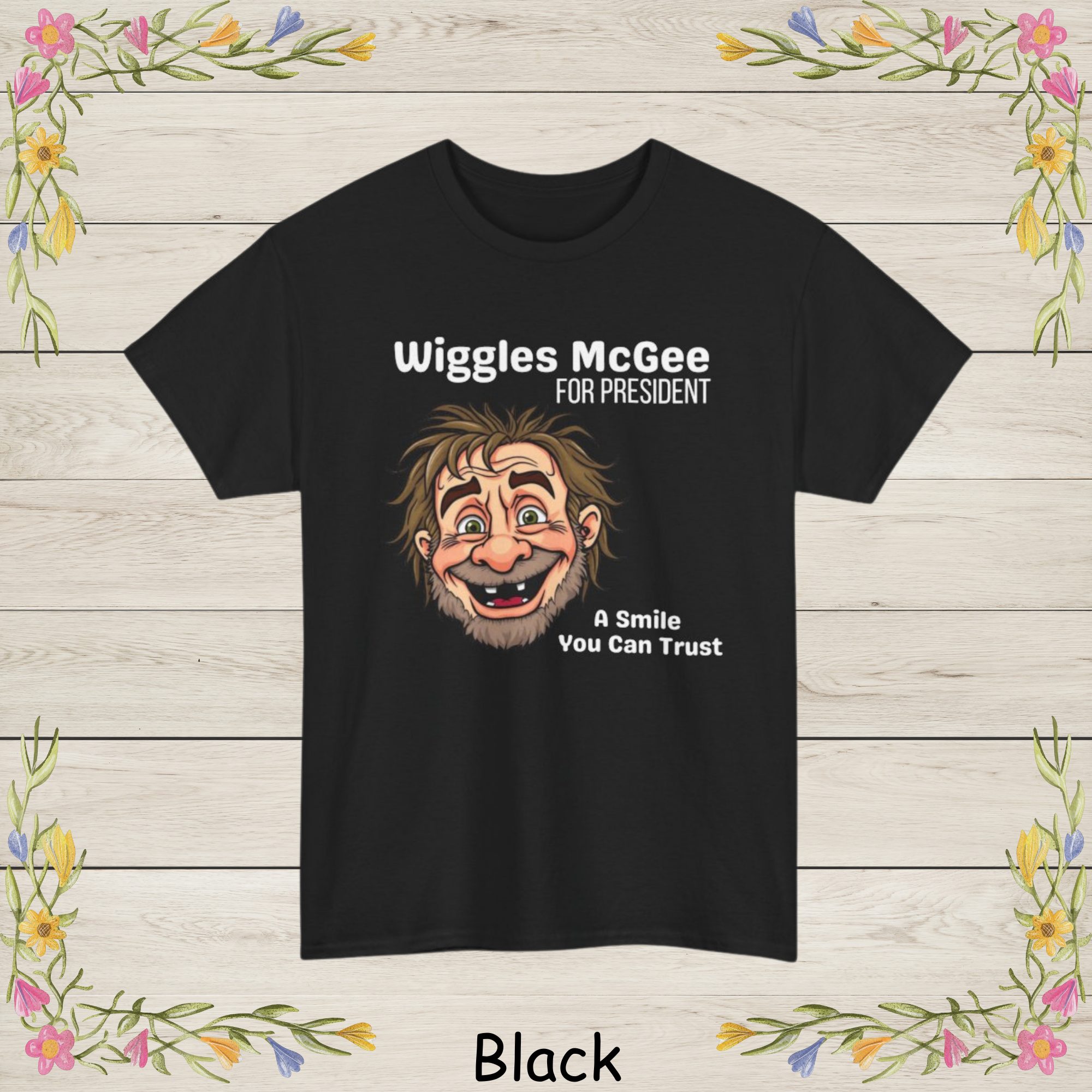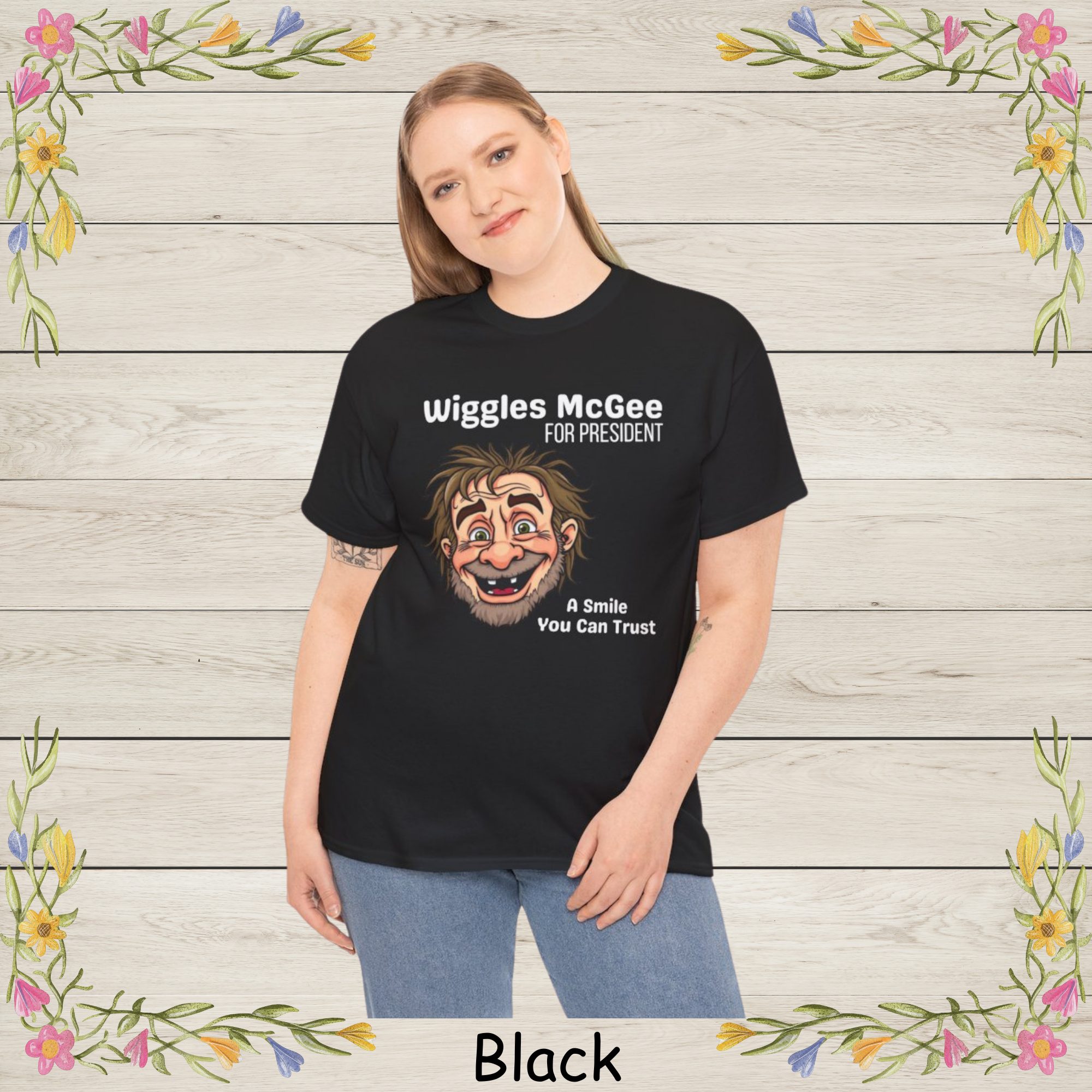 | ** Political T Shirt, Wiggles McGee For President, Funny Cartoon Shirt, Humor Tee, Novelty T, Graphic Shirt, Comedy ** |