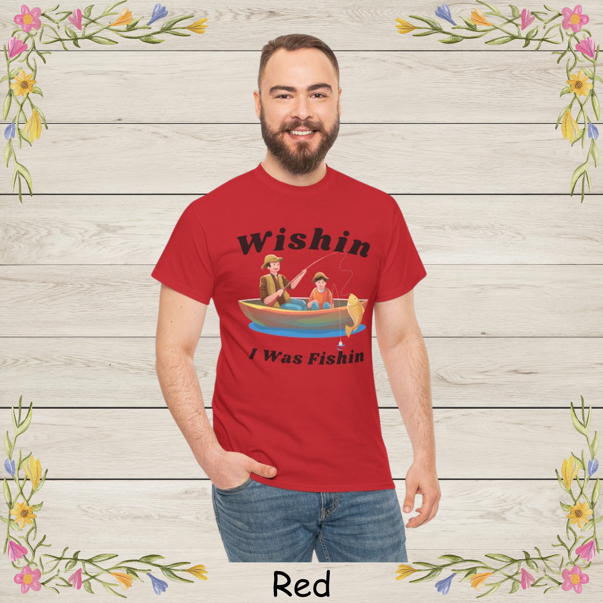 ** Wishin I Was Fishin Dad and Son Fishing Angler Tee Family Bonding, Outdoor Activity **